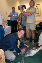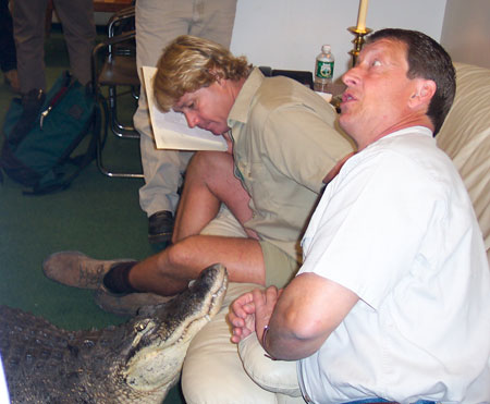 Steve with his obedient crocodile. |